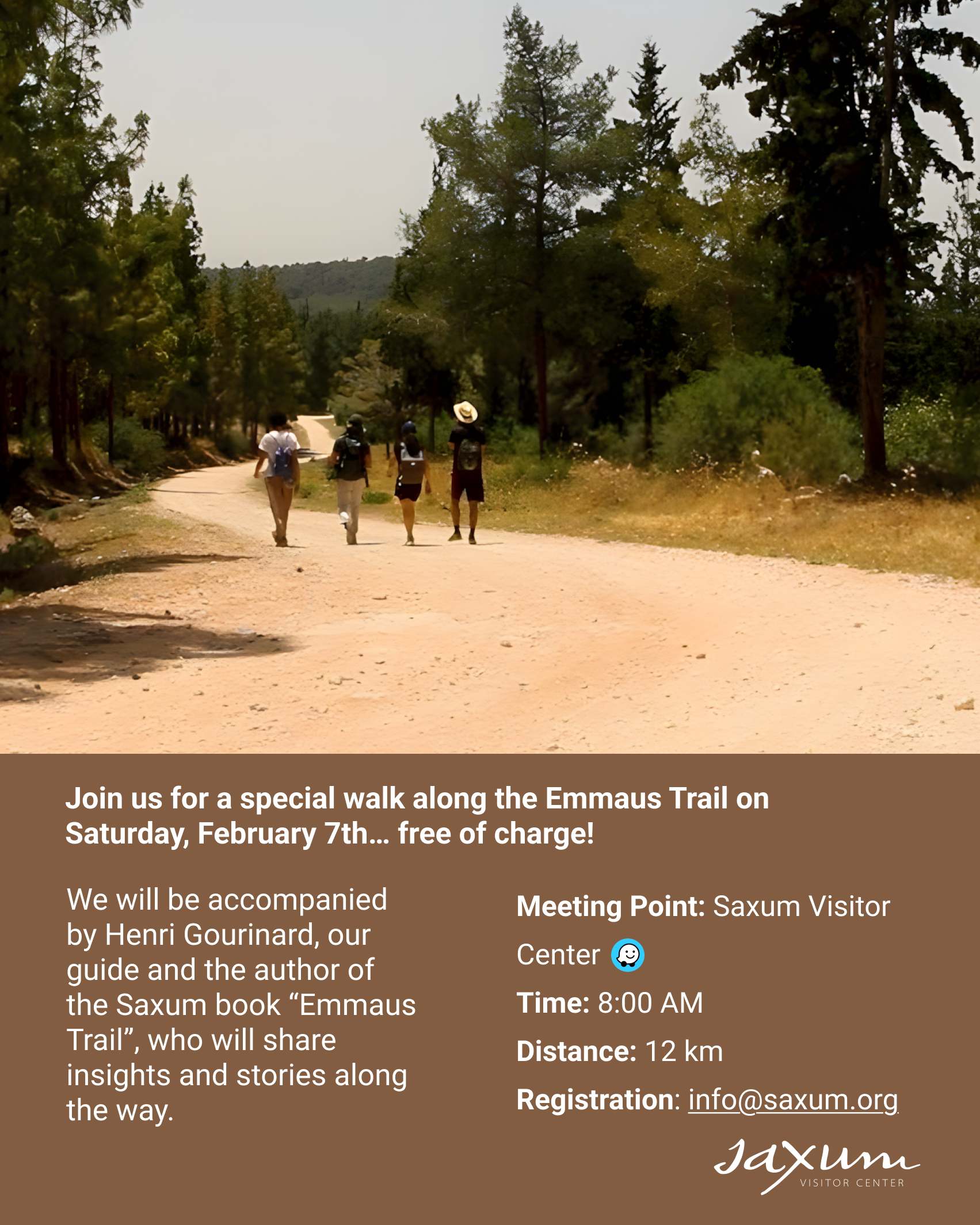Una ruta bíblica e histórica de 20 km desde Saxum Visitor Center hasta Emaús-Nicópolis.